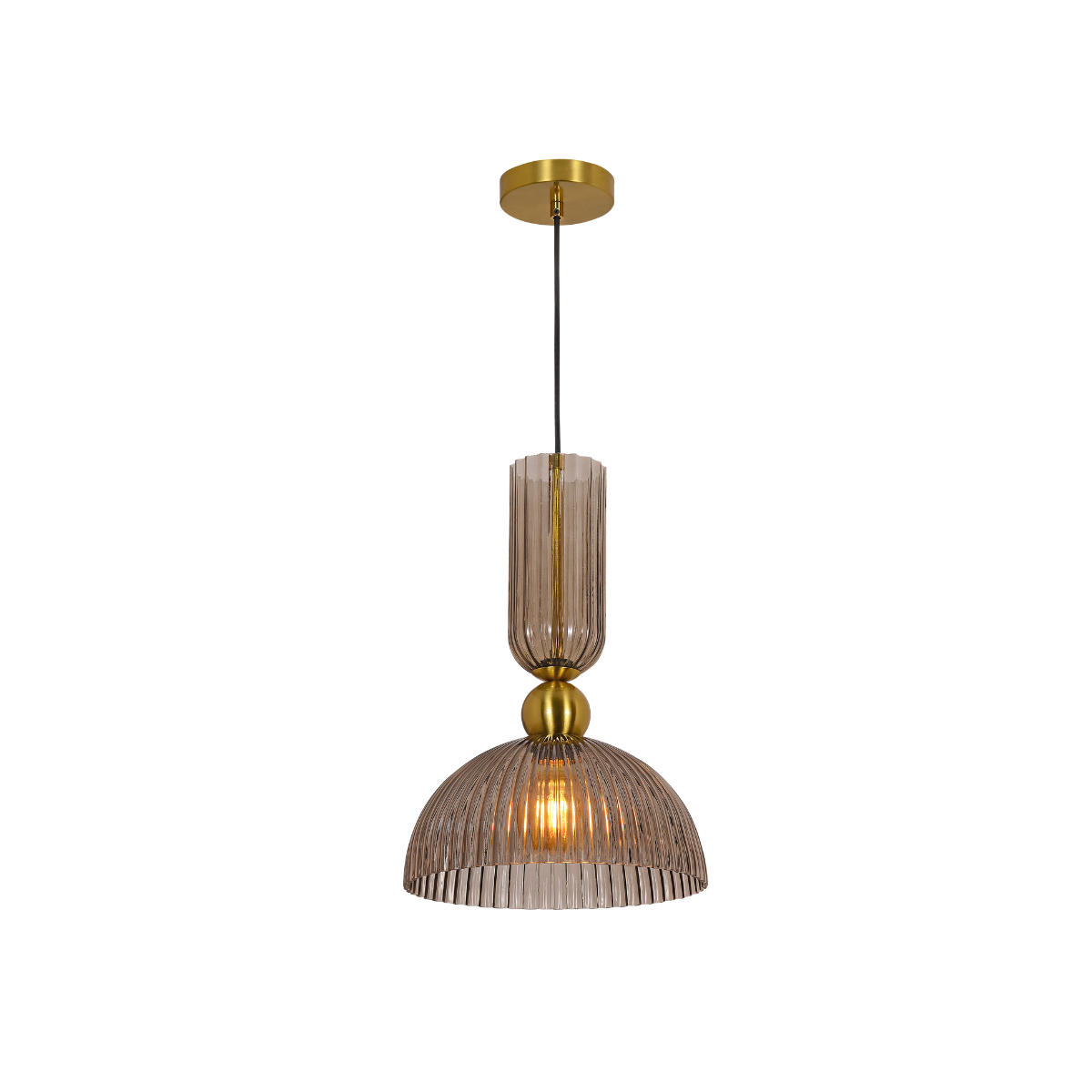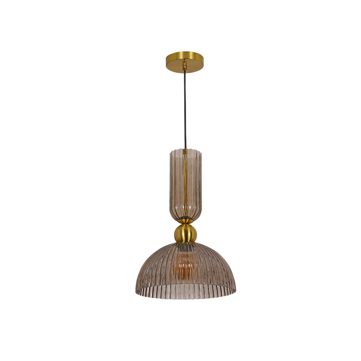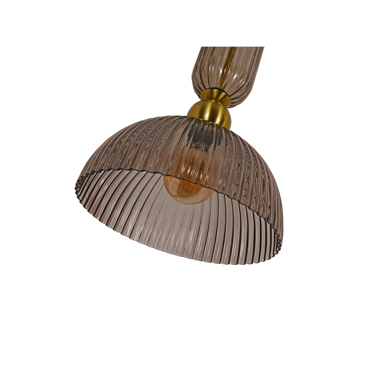 Piega smoked to dekoracyjna lampa wisząca, która zachwyca głębokim, przydymionym kolorem szkła oraz elegancką, rzeźbiarską formą. Ryflowany klosz nadaje całości wyrazistej struktury, jednocześnie delikatnie rozpraszając światło i budując wyjątkowy klimat w pomieszczeniu.
