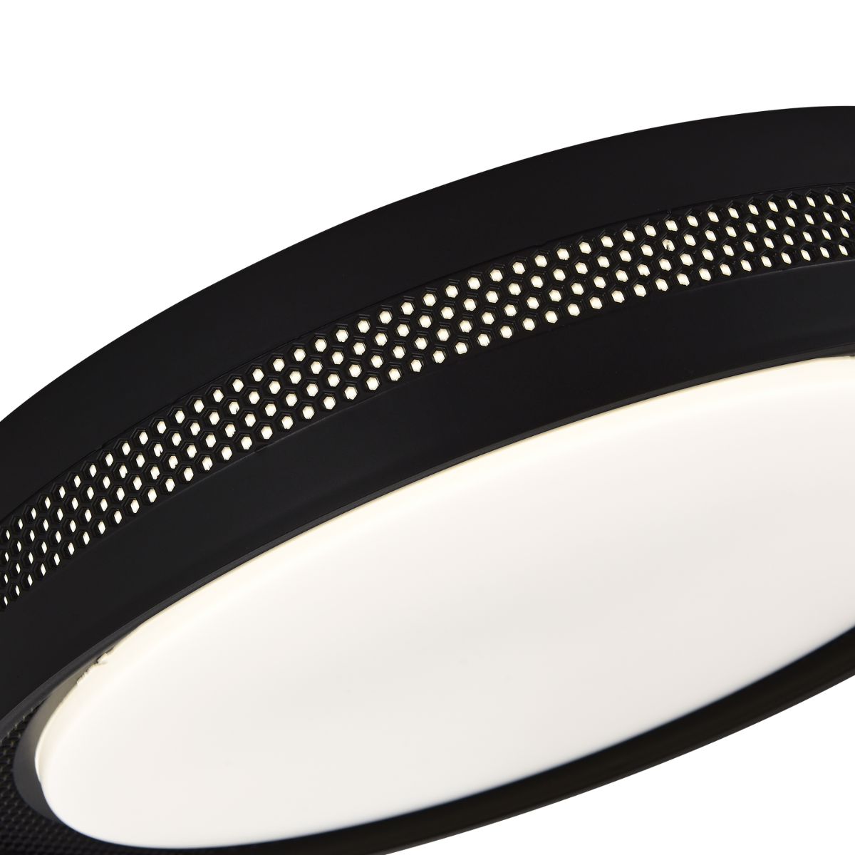 Ronda czarna 40 to elegancki plafon LED, który łączy minimalistyczną formę z dekoracyjnymi detalami. Perforowana opaska nadaje lampie industrialnego, designerskiego wyrazu, a czarne wykończenie wprowadza nowoczesną, ponadczasową estetykę. Mleczny dyfuzor zapewnia równomierne i delikatne światło, które idealnie sprawdza się zarówno w przestrzeniach mieszkalnych, jak i komercyjnych.
