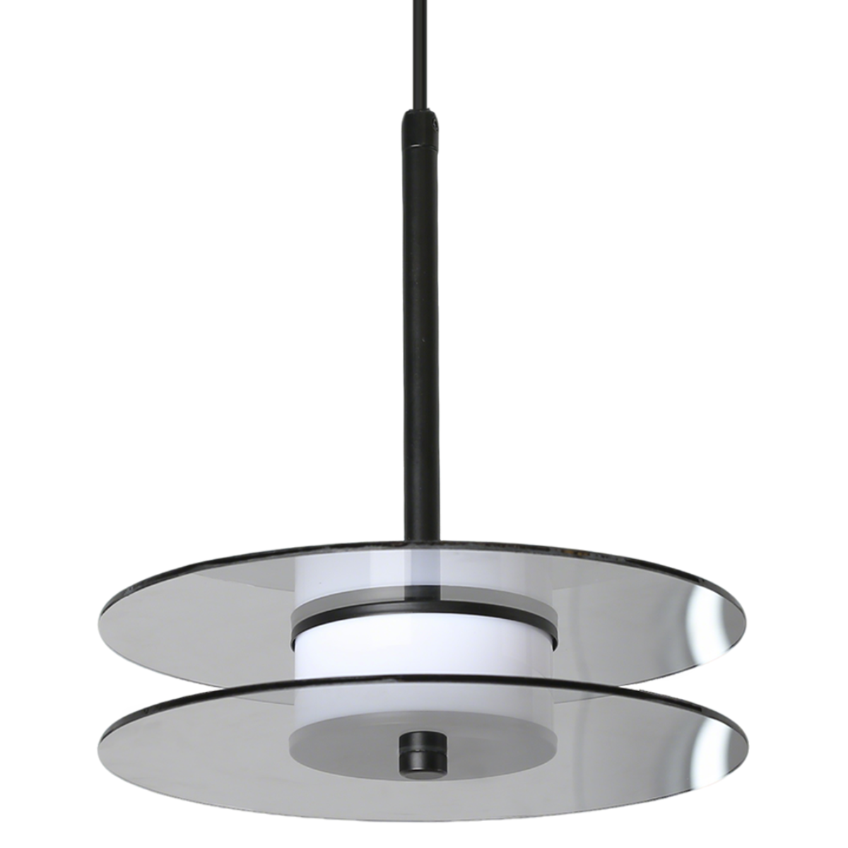 Casy mała wisząca – dymna to stylowa i nowoczesna lampa, która łączy subtelność szkła z elegancją czarnego wykończenia. Jej unikalna forma opiera się na dwóch szklanych dyskach o dymnym zabarwieniu, które delikatnie rozpraszają światło. Zintegrowany moduł LED emituje przyjemną, miękką poświatę, wprowadzając do wnętrza atmosferę spokoju i nowoczesnej harmonii.
